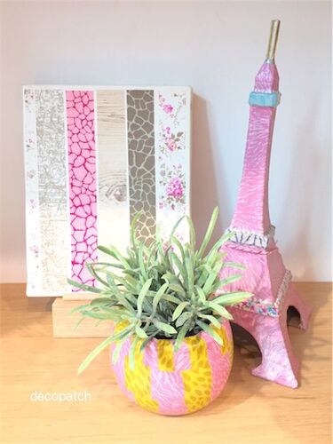 画像はデコパッチ用ペーパーマッシュ。 紙で出来た張子のような物で主に動物の形が多いですが箱や貯金箱、フレームなどさまざまな形の物があります。 店頭で開催するワークショップの場合はこのデコパッチ用ペーパーマッシュの中から選んで貼ってもらう事が…